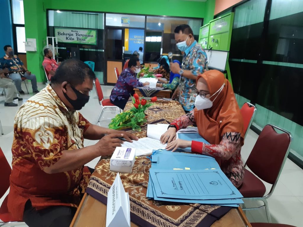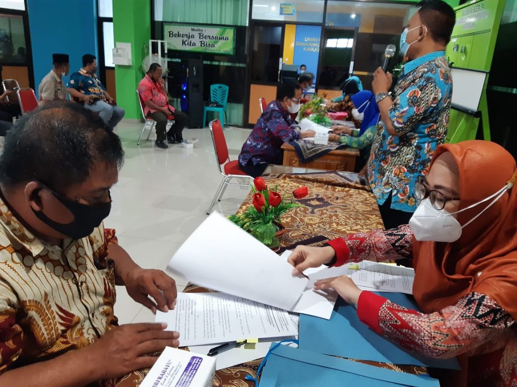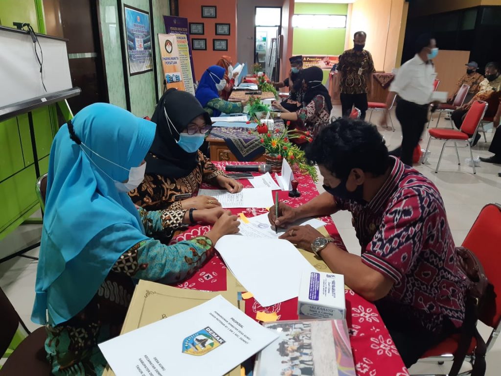 Dinperkim Kab. Demak – Kamis, 21 Januari 2021. Dalam rangka untuk mencapai WTP (Wajar Tanpa Pengecualian) ke 5 dinperkim melaksanakan tertib administrasi dengan penyerahan asset yang sudah di bangun dengan dinperkim kepada desa. Hal ini dilaksanakan sebagai tindak lanjut dari pembangunan paket paket pekerjaan yang sudah dilakukan di tahun 2020. Serah terima asset ini dilaksanakan di Aula dinperkim.