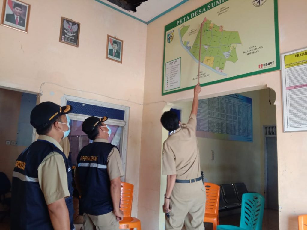Dinperkim kab. Demak – Senin 25 Januari 2021 Akibat dari bedahnya sungai Kalituntang menyebabkan beberapa wilayah di Demak banjir salah satunya yaitu desa Sumberrejo. Untuk memastikan korban bencana banjir di desa yang terjadi awal tahun ini, Tim Pendata Korban Bencana Dinperkim lakukan survey untuk pendataan korban bencana alam yang terjadi di Desa Sumberrejo Kecamatan Bonang Kabupaten Demak. Pelaksanaan survey ini dilaksanakan oleh bapak Suparno SE. Bapak Agus, April, Andika dan Rahma selaku Tim Pendata Korban Bencana.