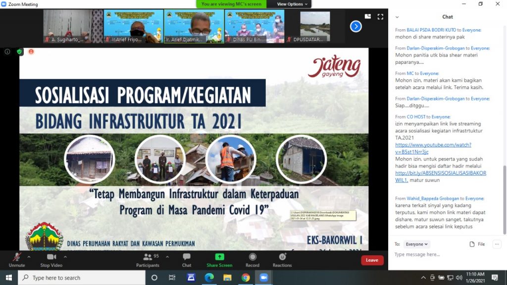 - Sosialisasi Program/Kegiatan Bidang Infrastruktur Ta 2021 yang disampaikan oleh Disperakim Provinsi Jawa Tengah