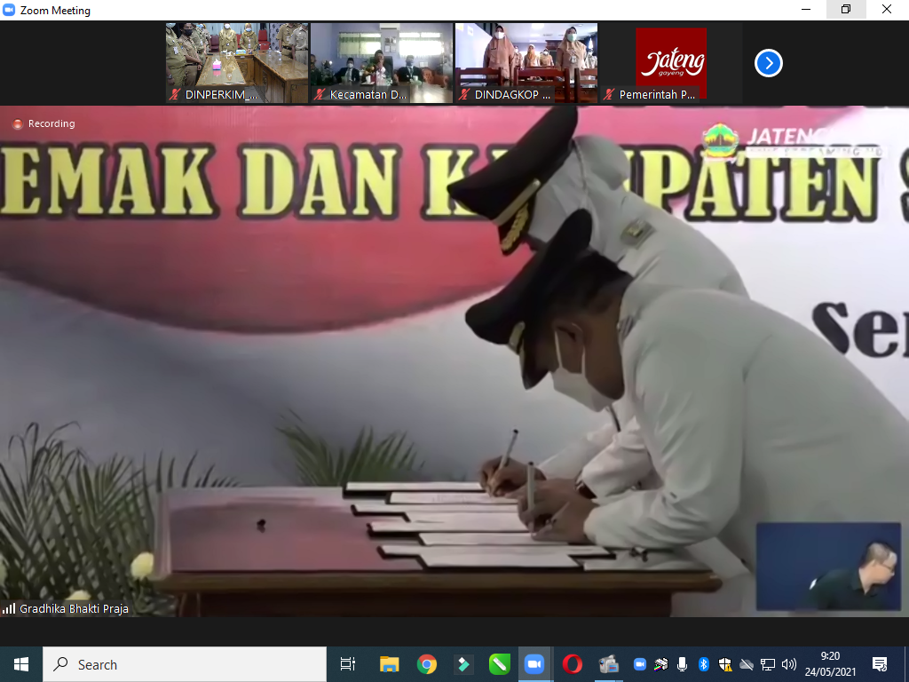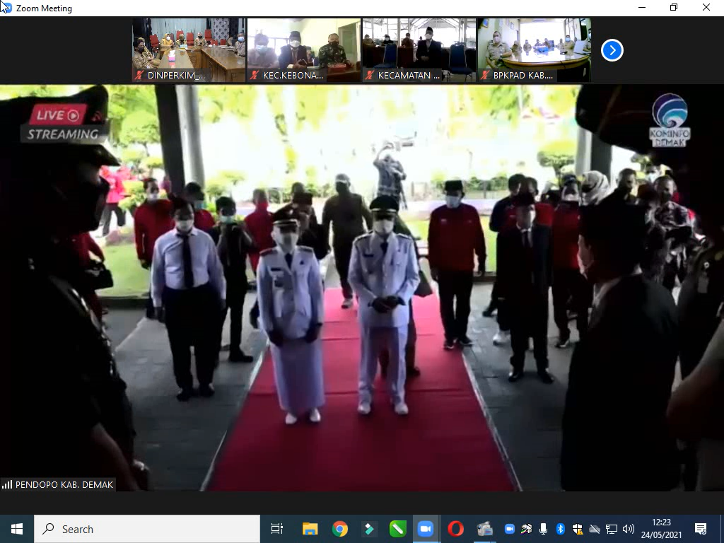 Kegiatan ini dihadiri oleh Bupati dan Wakil Bupati masa bakti 2016 – 2021, plh Bupati Demak Bapak dr. Singgih Setyono, M.Kes, Bupati dan Wakil Bupati terpilih masa bakti 2021 – 2026 dan diikuti oleh seluruh OPD yang ada dilingkungan Kabupaten Demak baik secara langsung maupun secara virtual yang disaksikan juga oleh gubernur jawa tengah yang diwakili oleh Kepala Biro Pemerintahan dan Kerjasam dengan Setda Provinsi jawa tengah.