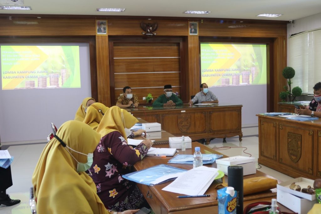 Dinperkim Kab Demak – Kamis 29 Juli 2021 bertempat di ruang pertemuan lantai 2 Dinputaru Kab Demak. Dihadiri oleh para juri Lomba Kampung Juara 2021 yang telah siap menikmati paparan yang dipresentasikan oleh pihak desa Buko dalam rangka mengikuti lomba kampung juara 2021 yang diadakan oleh Dinperkim Kab Demak, Pokja PKP dan KOTAKU.