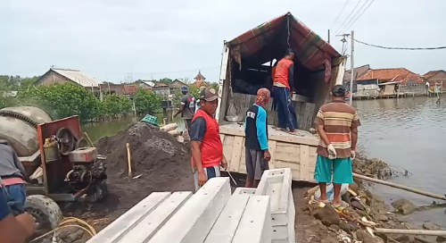 Dinperkim Kab. Demak – Senin, (15/11/2021) Dalam proses pengiriman Ruspin kepada penerima bantuan Pembangunan Baru (PB)di Dukuh Bedono, Desa Bedono tidak begitu berjalan dengan mulus, Kondisi jalan yang sedang dalam perbaikan menyebabkan truk yang mengangkut Ruspin ini mengalami kendala. Roda belakang bagian kanan truk ambles di jalan padas menuju dukuh Bedono.