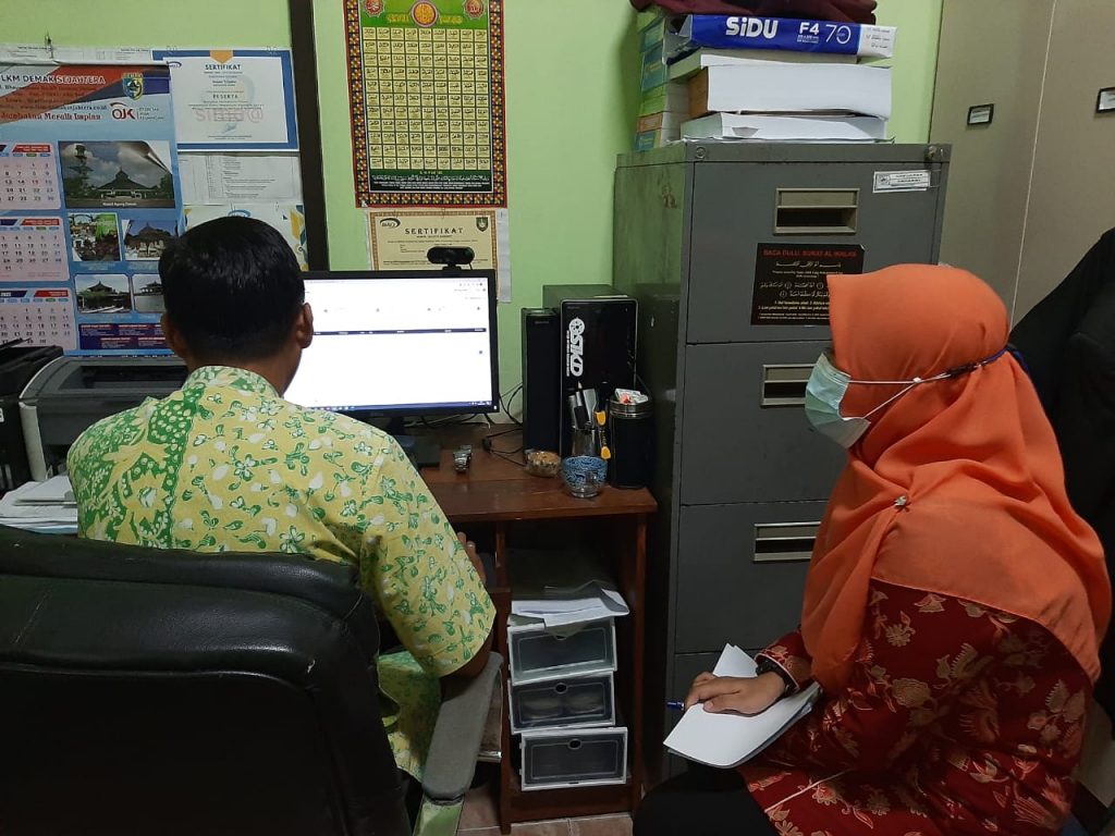 Esya melakukan koordinasi dengan Ikhsan pegawai Badan Pengelolaan Keuangan, Pendapatan dan Aset Daerah Kabupaten Demak di Ruang BPKPAD (23/06/2022), Esya mengatakan “ada beberapa rekening yang tidak bisa saya input, mohon arahannya” tutur esya