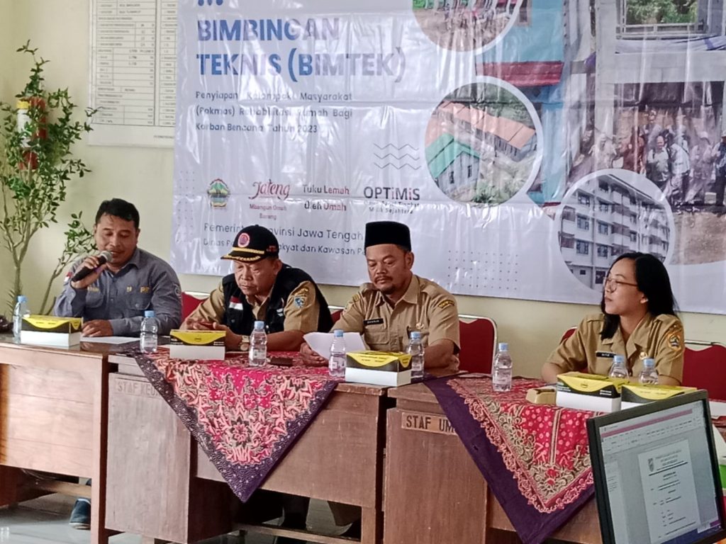 Dinperkim Kab. Demak dan BPBD Kab. Demak juga turut hadir pada kegiatan ini. Tujuan dari pelaksanaan Bimtek Bansos Rehabilitasi Rumah bagi Korban Bencana untuk memberikan arahan serta informasi mekanisme persiapan dan pelaksanaan Kegiatan Rehabilitasi Rumah bagi Korban Bencana Tahun 2023 kepada calon penerima bansos.