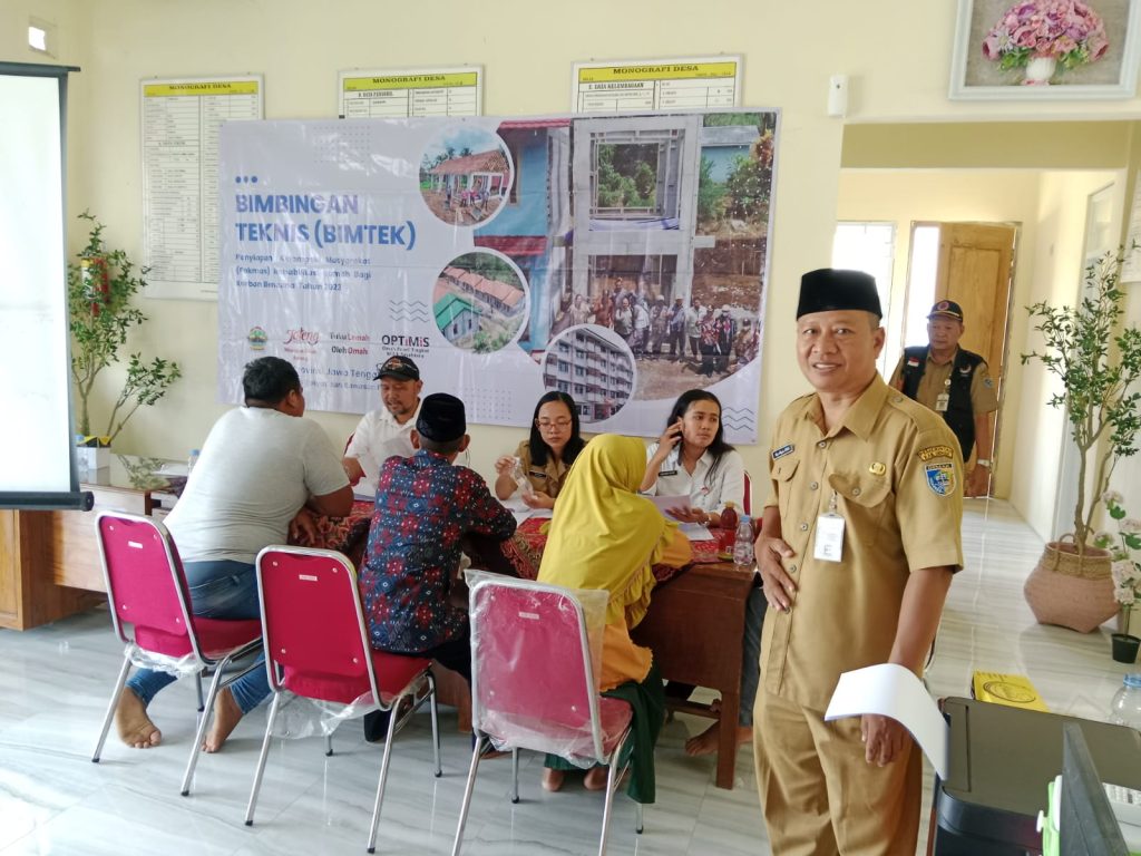 Dinperkim Kab. Demak- Usai lakukan Verival calon penerima Bansos Rehabilitasi Rumah bagi Korban Bencana, Kali ini Disperakim Provinsi Jateng lakukan Bimbingan Teknis (Bimtek) bersama warga Desa Bumiharjo Kecamatan Guntur pada Senin, 8 Mei 2023.